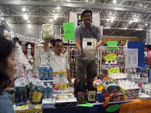 products at a recent show. William (in white) was even able to sell