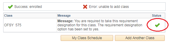 10a. Confirm that the Status column of the entry is a green checkmark for "Success: enrolled"